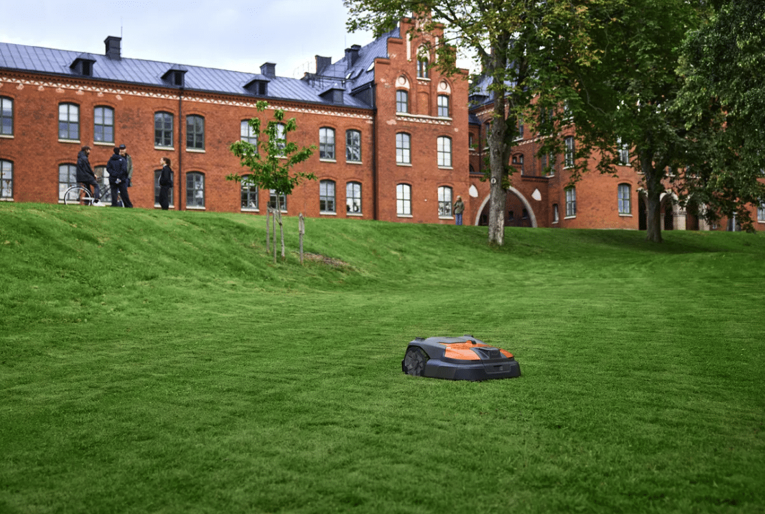 Kabelfri robotplæneklipper til vedligeholdelse af kommercielle græsbaner af begrænset størrelse