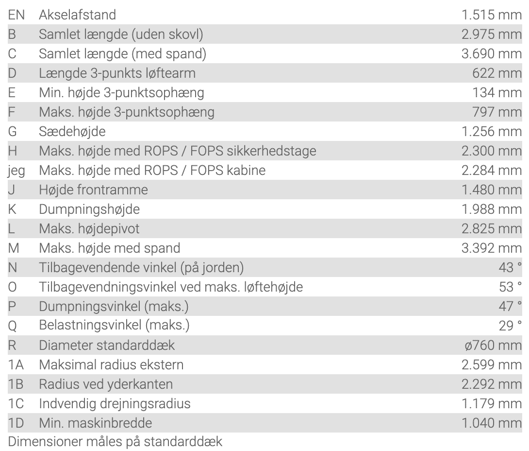 | Arbejds-hydraulik | 45 ltr / min (170 bar) |
