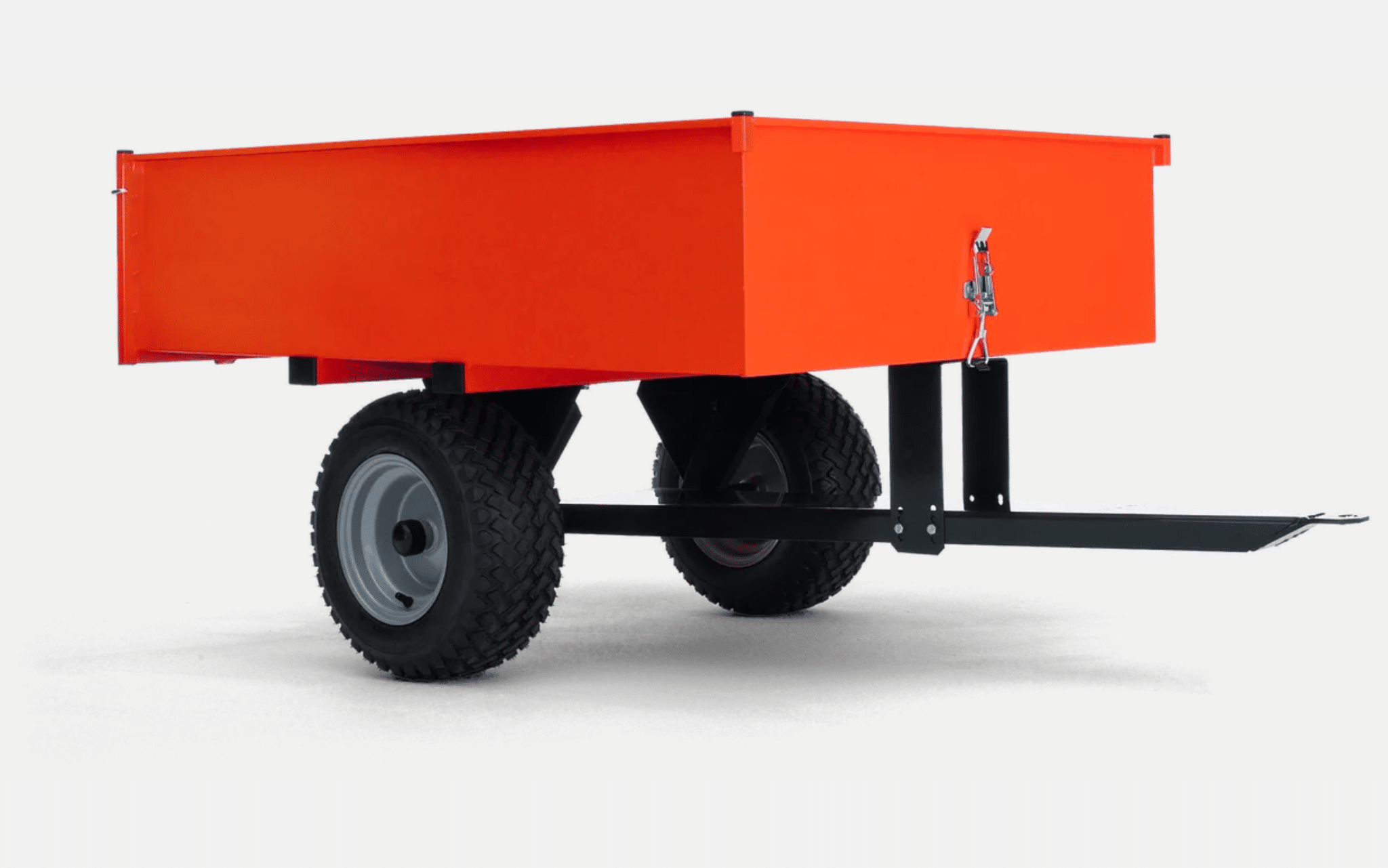 Rummelig trailer lavet af robust stål. Kan tippes med foldbar bagklap for nem på- og aflæsning.