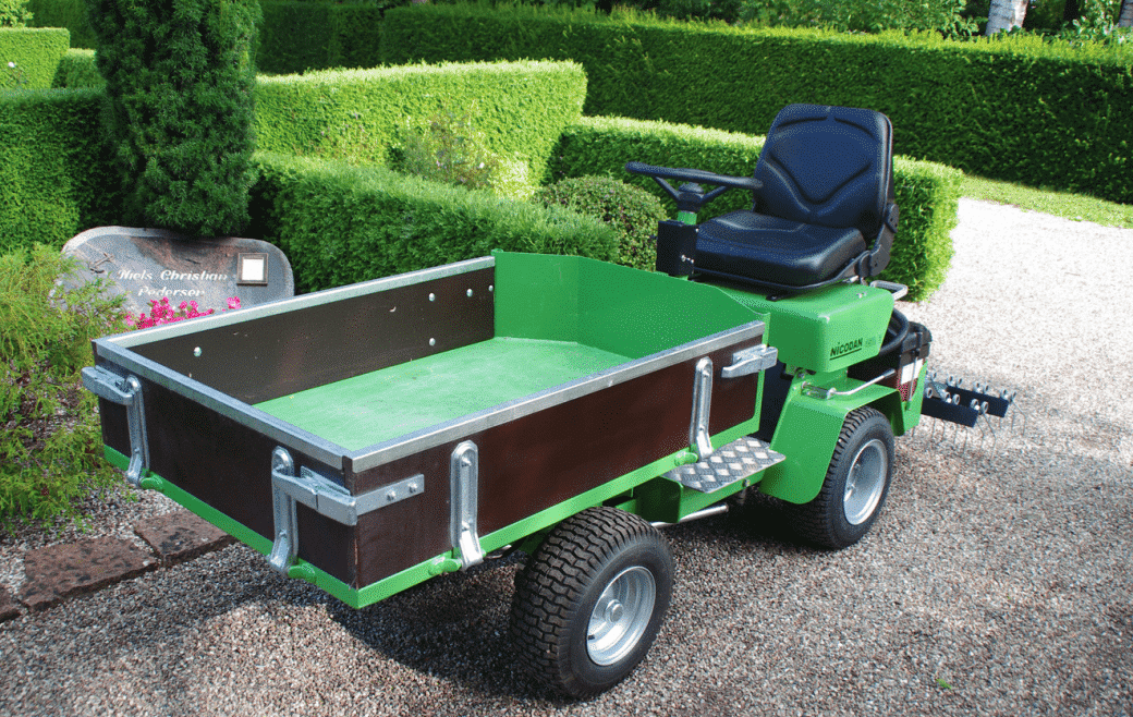 451 E er allround-modelllen til kirkegården. Maskinen er optimeret med henblik på maximal manøvredygtighed, men er samtidigt solidt bygget. Lasteevnen er 500 kg, og det hydrauliske tiplad gør det til en leg at manøvrere også de tunge læs.